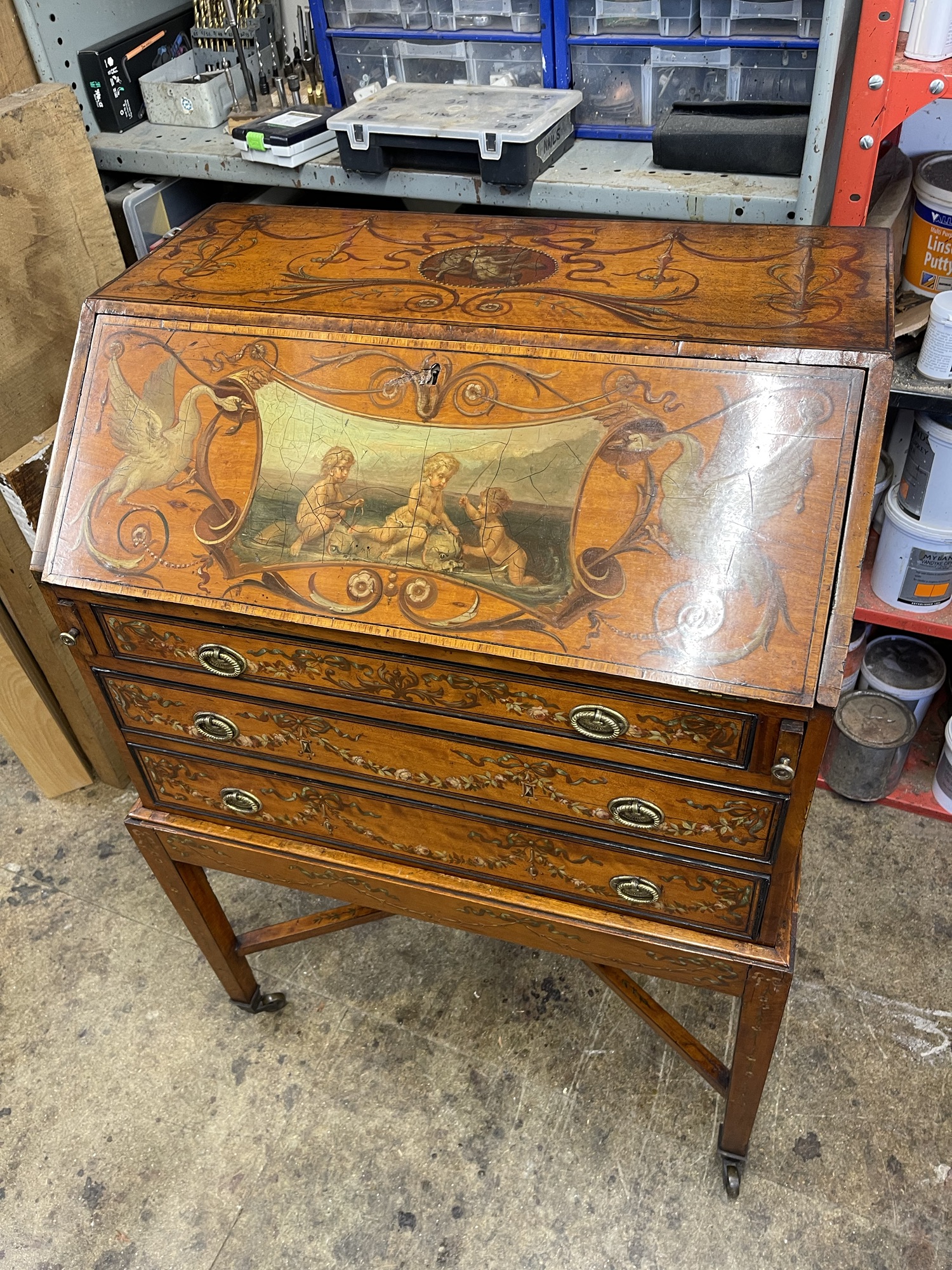 This bureau came to me because it had a very fragile base. You can see just how far it was leaning and if it had collapsed it might have been a costlier job to repair it so the brief was to strengthen the base as much as possible. Also there were a few veneers missingContinue reading “Painted satinwood ladies writing bureau from around 1780-1790”