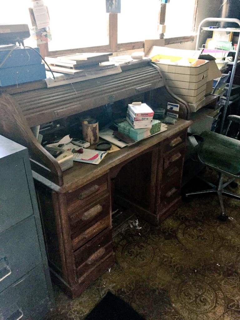 Heavily painted oak desk