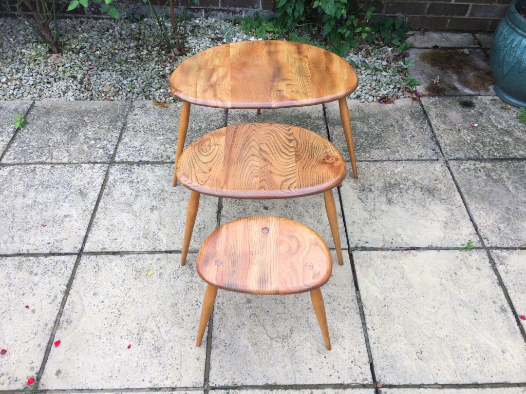 Ercol dining table with table extension and 6 chairs